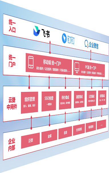 对协作平台提供支持服务,,,支持企业应用与协作平台对接,,,包含组织同步、、、、消息集成、、、待办集成等。。。支持目前主流的协作平台:钉钉、、、企微和飞书。。